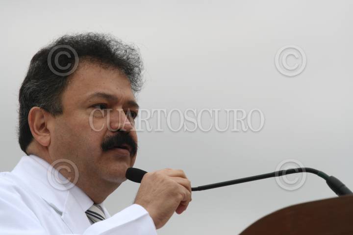 MÉXICO, D.F., 06NOVIEMBRE2009.- Armando Ahued durante el evento que se ralizo en la Escuela Primaria Rafael molina Betancourt, donde se dio inicio a la camapa de reforzamiento de limpieza de planteles Educativos que tiene como fin evitar el contagio del virus AH1N1. FOTO: SÁSHENKA GUTIÉRREZ/CUARTOSCURO.COM