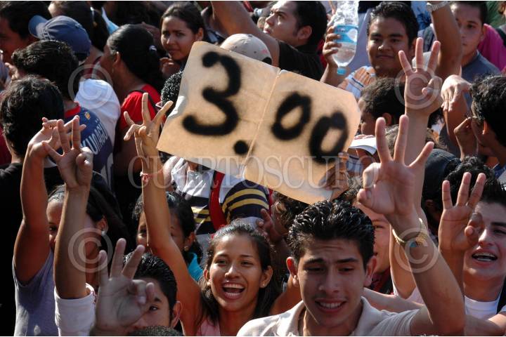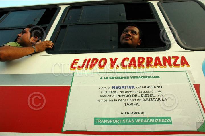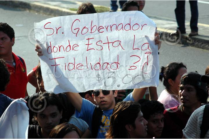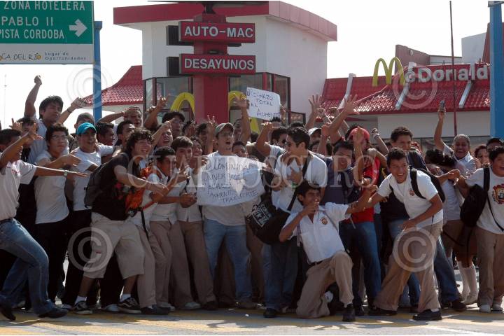 VERACRUZ, VERACRUZ. 23NOVIEMBRE2009.- Ante el alza a la tarifa del transporte urbano que se diera este fin de semana, esta mañana en diferentes puntos de la ciudad estudiantes de diversos niveles educativos se manifestaron, bloqueando el trafico en principales arterias de la ciudad. FOTO: JOSÉ CANDELARIO/CUARTOSCURO.COM