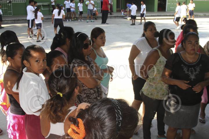ACAPULCO, GUERRERO, 08FEBRERO2016.- Padres de familia de la escuela primaria Constituyentes de 1917; ubicada en la colonia La Parota, atrás del panteón de Las Cruces, advierten que ya no van a pagar el salario de tres maestros, responsabilidad que asumieron desde hace más de siete meses, pues existía falta de recursos económicos en la periferia del puerto. Criticaron que autoridades educativas no resuelvan el problema y que no asignen profesores sin importar las peticiones. El director del plantel, José Antonio Silva Andraca, señaló que a partir de abril de 2015, se jubilaron tres maestros de tres aulas, afectando a 86 niños de 323 inscritos en la escuela. Explicó que se acordó con padres y madres cooperar cinco o seis pesos diarios. Micaela Candela Rodríguez, vicepresidenta de la sociedad de padres, manifestó que se acordó con padres pagar a un maestro es una aportación voluntaria de 7 pesos, y cuestionó al gobierno federal: " ¿dónde esta la educación a la que está apostando el gobierno si no hay maestros?, ¡queremos maestros!" FOTO: BERNANDINO HERNÁNDEZ /CUARTOSCURO.COM