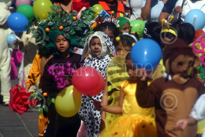 OAXACA, OAXACA, 19MARZO2009.- Niños disfrazados de diversos animales y plantas salieron a las calles en el tradicional desfile de pre primaria que se efectúa en el zócalo de esta ciudad. FOTO: MAX NÚÑEZ/CUARTOSCURO.COM