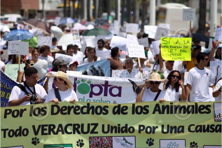 VERACRUZ, VERACRUZ., 22MAYO2010.- Aproximadamente 350 personas marcharon en distintos puntos del Boulevard Ávila Camacho para protestar en contra del maltrato animal y exigir a las autoridades que se implementen leyes que protejan a los animales, en el marco del día de la biodiversidad estas manifestaciones se efectuaron en varias ciudades del estado y del país. FOTO: FÉLIX MÁRQUEZ/CUARTOSCURO.COM