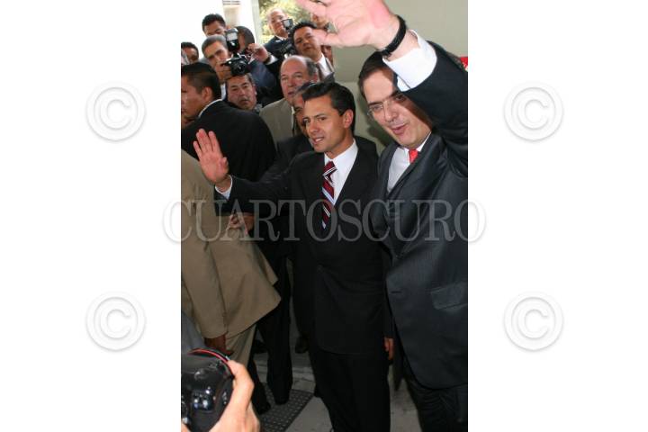 MÉXICO, D.F., 17ABRIL2009.- Enrique Peña Nieto, gobernador del Estado de México, a su salida del Congreso de Victimizacion y Eficacia Institucional que se celebro en el Centro de Investigación y Docencia Económicas (CIDE). FOTO: RICARDO CASTELAN/CUARTOSCURO.COM