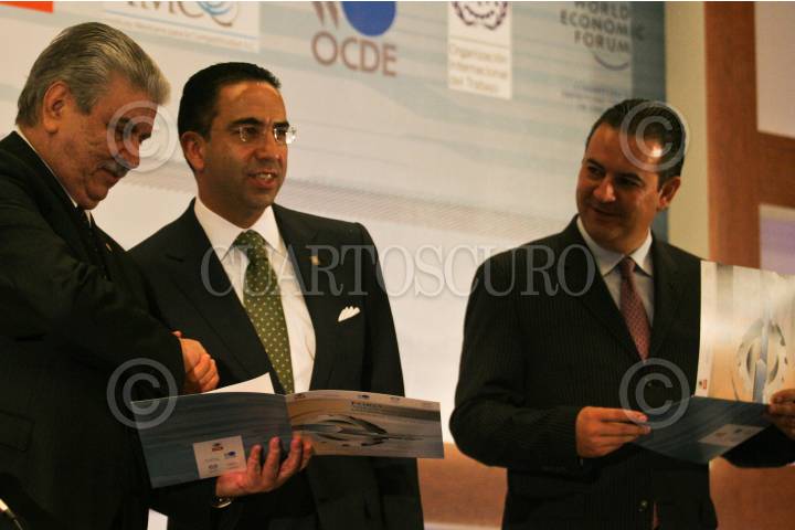 MÉXICO, D.F., 27SEPTIEMBRE2010.- Carlos Aceves del Olmo, Presidente de la Comisión del Trabajo y Previsión Social junto a Javier Lozano, Secretario del Trabajo, durante la inauguracion del foro: "Por un mercado laboral mas eficiente" por lo que fue sacado por elementos de seguridad del lugar. FOTO: ENRIQUE ORDÓÑEZ/CUARTOSCURO.COM