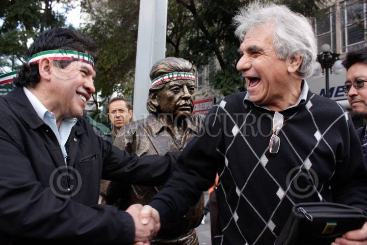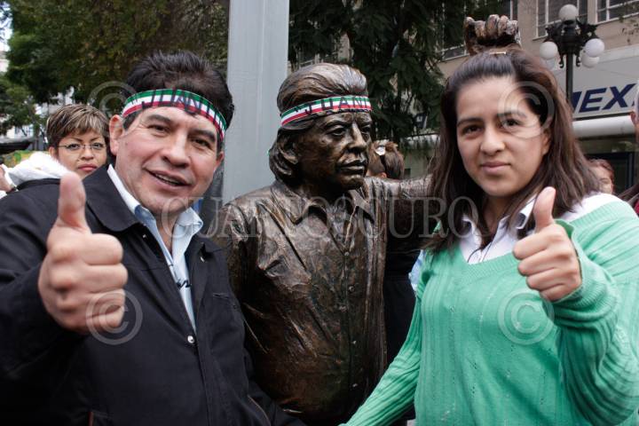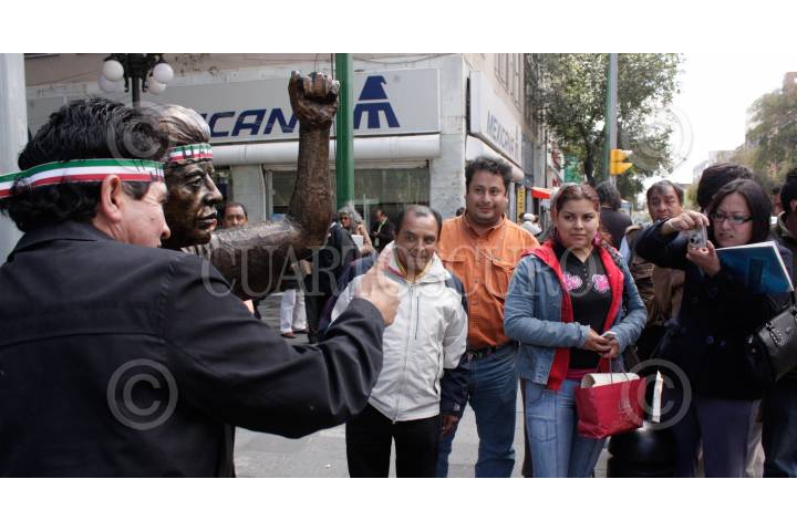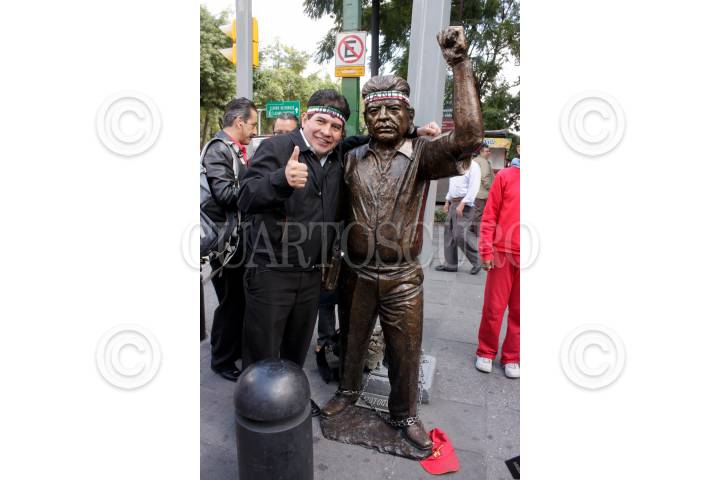 MÉXICO, D.F., 05NOVIEMBRE2009.- Rafael Acosta "Juanito", delegado con licencia en Iztapalapa colocó una estatua de su figura en el cruce de Balderas y Juarez. Esta estatua se encuentra encadenada a un poste para evitar que se la roben, además estará en diversos puntos de la ciudad hasta el 25 de noviembre. FOTO: ESSENE HERNÁNDEZ/CUARTOSCURO.COM
