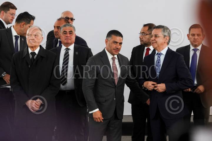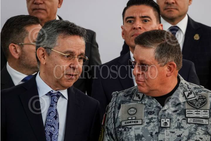 CIUDAD DE MÉXICO, 27AGOSTO2025.- Omar García Harfuch, Secretario de Seguridad Pública, junto con el Fiscal General Alejandro Gertz Manero, durante la XXXI Asamblea Plenaria de la Conferencia Nacional de Secretarías de Seguridad Pública, en la cual estuvo presente Ricardo Trevilla Trejo, Secretario de la Defensa Nacional. FOTO: GALO CAÑAS /CUARTOSCURO.COM