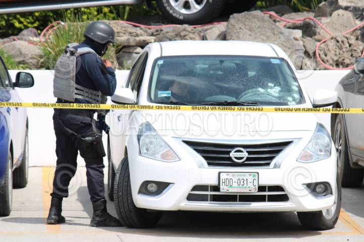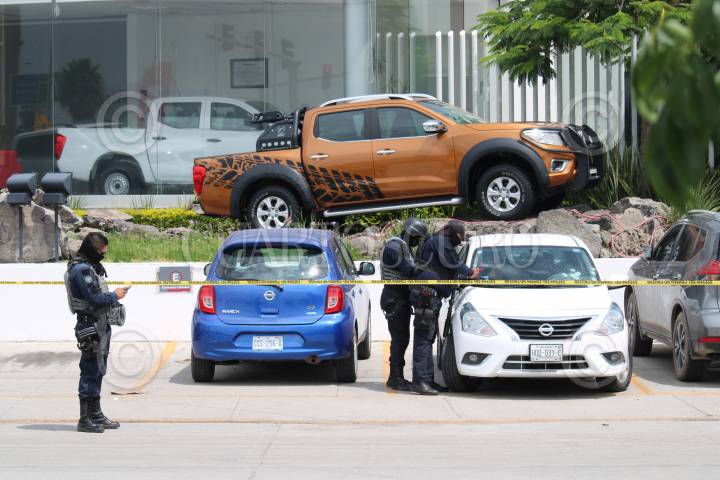 Hombres armados atacan a pasajeros de una automóvil que estaba estacionado en una agencia automotriz.