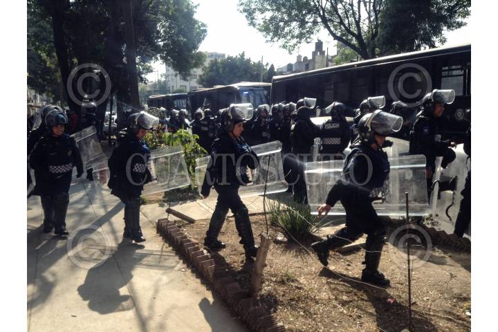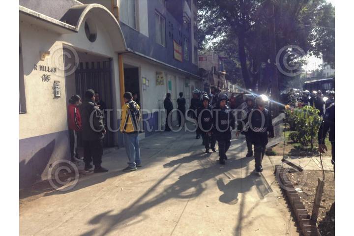 CIUDAD DE MÉXICO, 25FEBRERO2016.- Elementos de la Procuraduría General de Justicia del Distrito Federal, apoyados por granaderos, implementaron una orden de desalojo en un edificio habitacional con el No. 115 en Eje 5 y Ramos Millan, presuntamente por posibles defraudadores de vivienda. FOTO: ADOLFO VLADIMIR /CUARTOSCURO.COM