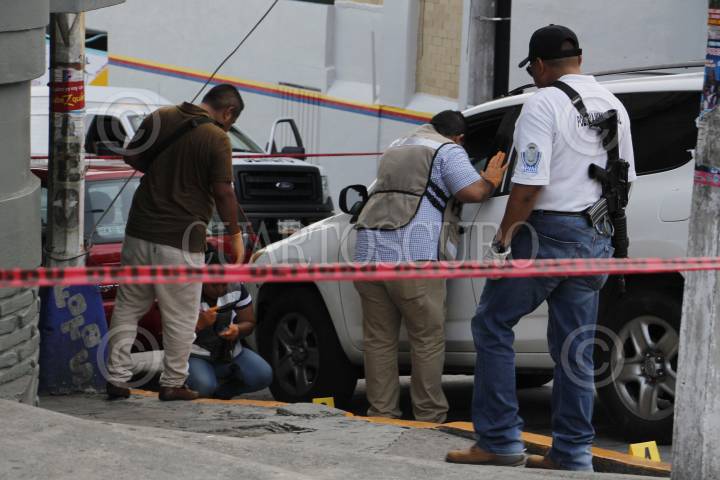 ACAPULCO, GUERRERO, 06JUNIO2018.- Esta tarde dos mujeres fueron asesinadas a balazos dentro de una camioneta RAV4, entre las avenidas Ruiz Cortines y Bernal Díaz del Castillo de la colonia Progreso de Acapulco, policías estatales, ministeriales y soldados aseguraron el lugar mientras se hizo el levantamiento de los cuerpos por trabajadores del Servicio Medico Forense. FOTO: CARLOS ALBERTO CARBAJAL /CUARTOSCURO.COM