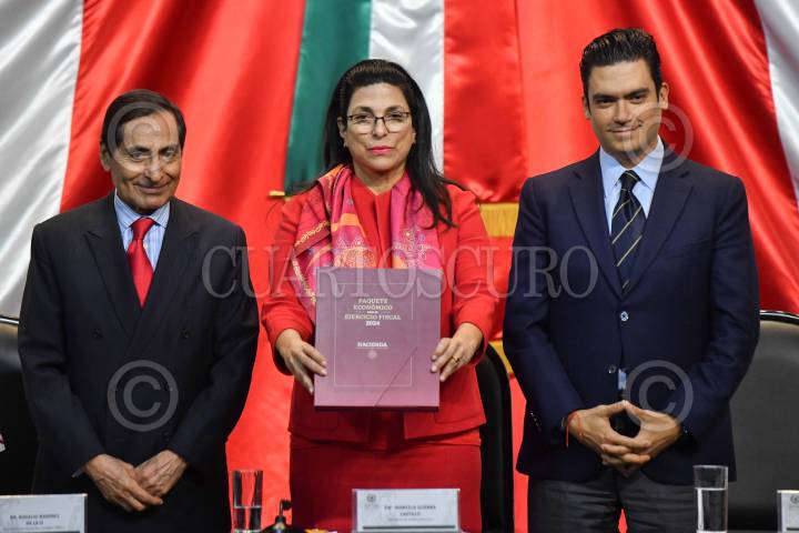 CIUDAD DE MÉXICO, 08SEPTIEMBRE2023.- Rogelio Ramírez de la O, secretario de Hacienda y Crédito Público, entregó el Paquete Económico para el Ejercicio Fiscal 2024 a la Cámara de Diputados. Marcela Guerra, presidenta de la mesa directiva, y Jorge Romero, presidente de la Junta de Coordinación Política (Jucopo) presidieron la recepción en el salón Legisladores de la República del Recinto Legislativo de San Lázaro. FOTO: MARIO JASSO/CUARTOSCURO.COM