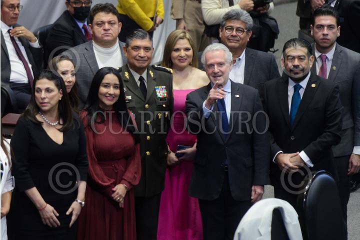 Santiago Creel, presidente de la mesa directiva, y Luis Cresencio Sandoval, secretario de la Defensa Nacional, durante la sesión solemne de la Cámara de Diputados con motivo del Día del Ejército Mexicano.