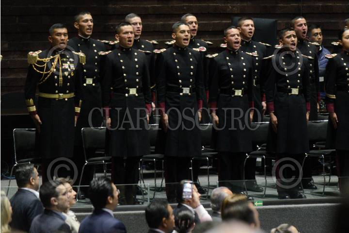 Cadetes del Heroico Colegio Militar, durante la sesión solemne de la Cámara de Diputados con motivo del Día del Ejército Mexicano.