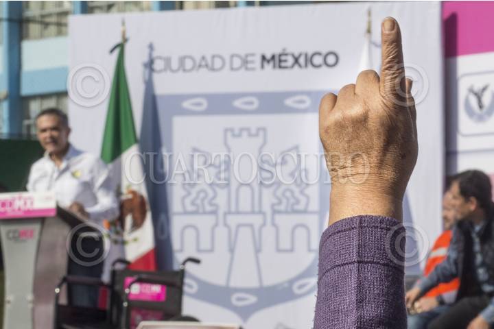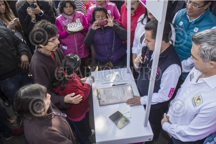 MEXICO, D.F., 19DICIEMBRE2015.- Acompañado por miembros de su gabinete, el jefe de gobierno capitalino, Miguel Ángel Mancera, encabezó la jornada "Tu ciudad te requiere" en la Unidad Habitacional Ejercito de Oriente, de la delegación Iztapalapa. En el marco de las actividades, se realizó una feria de servicios públicos y Mancera visitó algunas casas del complejo habitacional para hacer entrega de sillas de ruedas y medicamentos a adultos mayores y promover los programas sociales que el GDF otorga. FOTO: DAVID POLO/ CUARTOSCURO.COM
