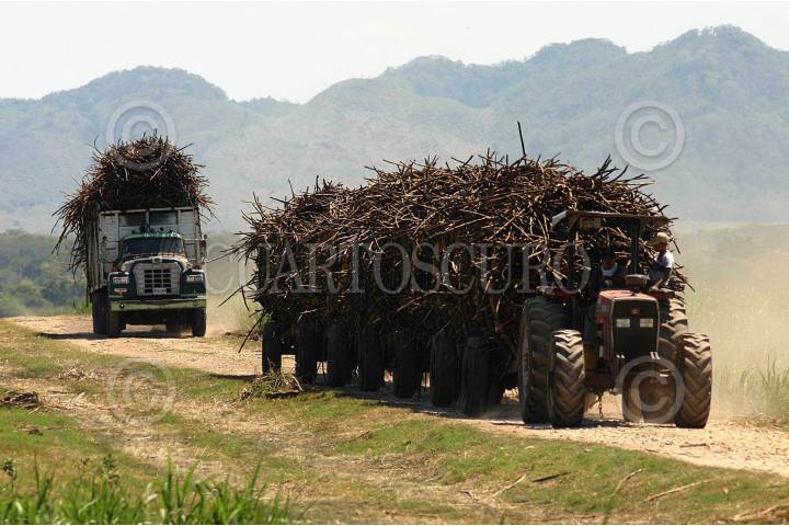 TENOSIQUE, TABASCO, 09AGOSTO2005.- La produción de la Zafra en los campos cañeros se ha visto reducido ante el paro de los ejidatarios, un furgon trasporta el producto hacia el Ingenio Hermelegindo Galeana. FOTO: Marco Polo Gúzman/CUARTOSCURO.COM