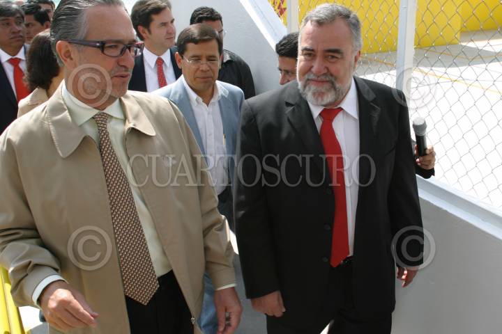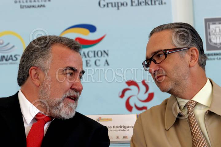 MEXICO, D.F. 02SEPTIMBRE2005.- Alejandro Encinas, jefe de gobierno de la ciudad de Mèxico conversa con el empresario Ricardo Salinas Pliego durante la ceremonia de inaguración del Parkelektra Ejidal 10, en Iztapalapa. FOTO: Nelly Salas/CUARTOSCURO.COM