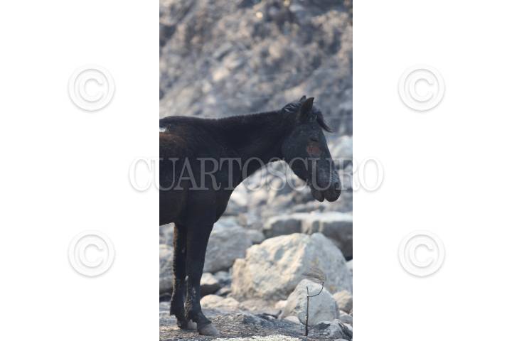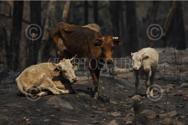 Ganado afectado por el incendio en Sierra de Santiago en la zona conocida como ejido La Ciénaga.