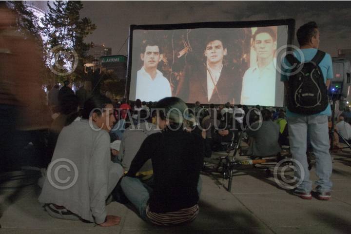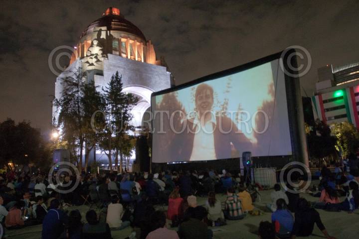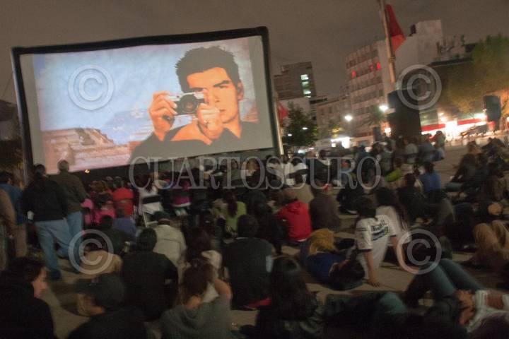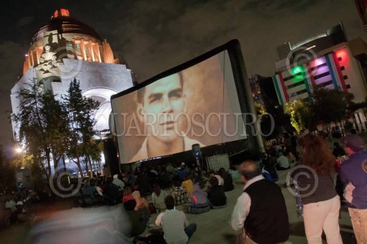 MÉXICO, D.F. 07OCTUBRE2012.- El documental "La huella del Dr. Ernesto Guevara" (2012) , Jorge Denti, fué presentado en la Plaza de la República. Cobijado por el Monumento a la Revolución, el documental muestra la faceta como médico de Ernesto Guevara, sus aportes a la alergología, así como el segundo recorrido que realizó en su juventud por América Latina. El cineasta argentino radicado en México desde hace 30 años, destacó que esta plaza en donde se proyectó el documental, transcurrieron hechos históricos importantes, "es en esta colonia Ernesto conoce a Raúl y Fidel Castro". FOTO: JUAN PABLO ZAMORA /CUARTOSCURO.COM
