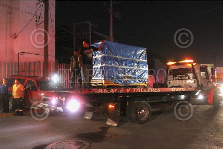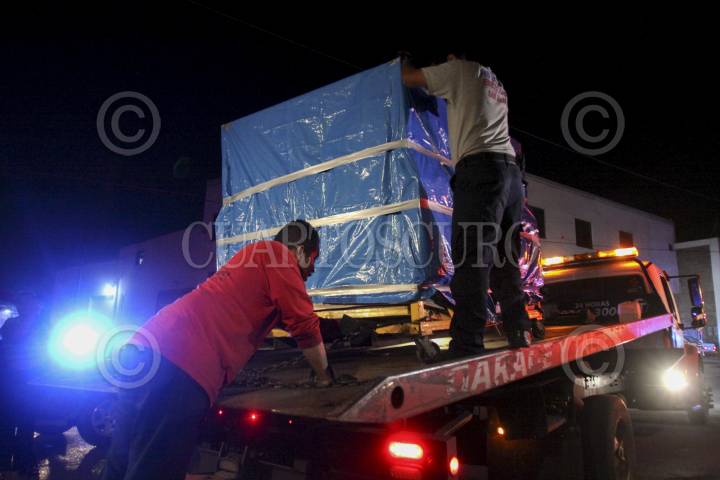 MONTERREY, NUEVO LEÓN, 27MAYO2014.- Ayer por la noche, los restos de Manuel Uribe, considerado la persona con mayor sobrepeso en el mundo en 2007, fueron llevados desde el Hospital Universitario hasta un crematorio en Santa Catarina con la ayuda de una grúa, en donde elementos de protección civil y tránsitos municipales auxiliaron la transportación. FOTO: GABRIELA PÉREZ MONTIEL / CUARTOSCURO.COM