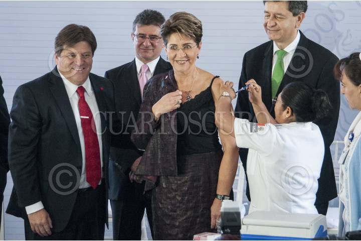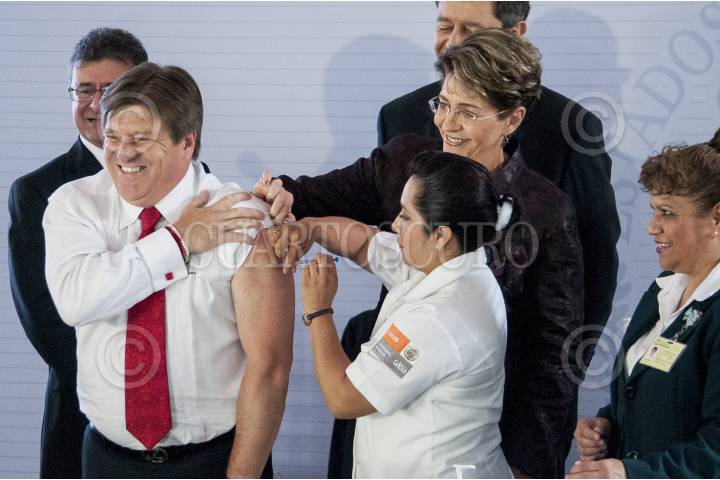 MÉXICO, D.F., 21OCTUBRE2014.- Ignacio Villaseñor Ruiz, director del centro nacional para la infancia y la adolescencia; Miguel "el piojo" Herrera, director de la Selección Mexicana de Fútbol, y Mercedes Juan López, titular de la Secretaría de Salud, encabezaron el evento "Embajadores por la vacunación… ahora Influenza Estacional", para iniciar dicha campaña a nivel nacional. FOTO: DIEGO SIMÓN SÁNCHEZ /CUARTOSCURO.COM