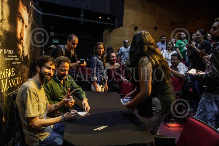 CIUDAD DE MÉXICO, 15JULIO2017.- Los actores Benny Ibarra y Carlos Corona, firmaron discos con la música de la obra El hombre de la Mancha a fans que acudieron a la presetanción del material. FOTO: ISAAC ESQUIVEL /CUARTOSCURO.COM