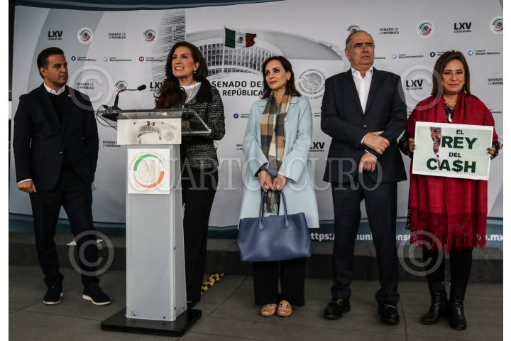 Kenia López, senadora del grupo parlamentario Pan durante conferencia de prensa en la Cámara de Senadores