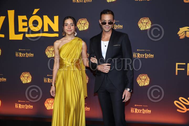 CIUDAD DE MÉXICO, 20MARZO2025. Majo Domínguez y Pierre Louis a su paso por la alfombra negra del musical “El Rey León” en su noche de estreno en el Teatro Telcel. FOTO: EDGAR NEGRETE LIRA/CUARTOSCURO.COM