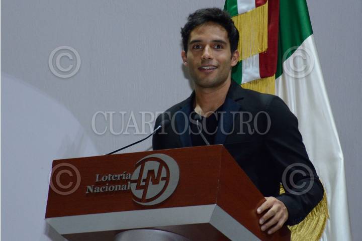 CIUDAD DE MÉXICO, 02JUNIO2017. El actor Agustín Argüello, durante la presentación del boleto conmemorativo "El rey León" del sorteo de la Lotería Nacional, en el marco del segundo aniversario de este musical, el cual contabiliza 694 presentaciones en vivo, y más de 750 mil espectactadores. FOTO: MARIO JASSO /CUARTOSCURO.COM