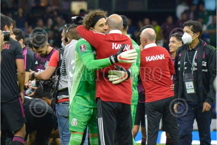 Guillermo Ocha, portero de la Selección Nacional Mexicana, celebra el pase directo a la Copa del Mundo Qatar 2022.