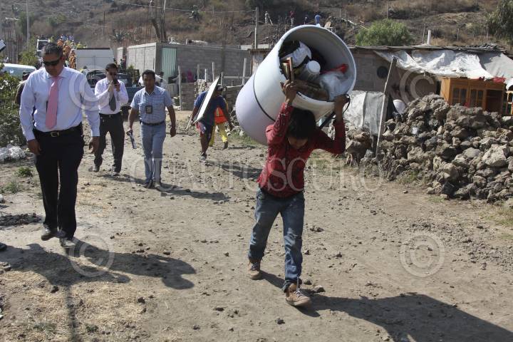 MEXICO, D.F., 27ENERO2014.- En operativo conjunto personal de la SSP-DF, PGJDF, Secretaria de Gobierno, Obras y Medio Ambiente, desalojaron a 450 familias de escasos recursos del predio de la Sierra de Santa Catarina ubicado en la delegación Tlahuac y catalogado como reserva ecológica. FOTO: SAÚL LÓPEZ /CUARTOSCURO.COM