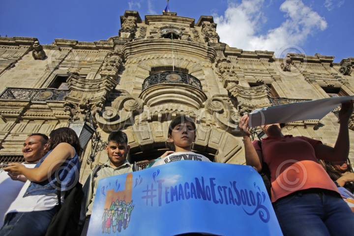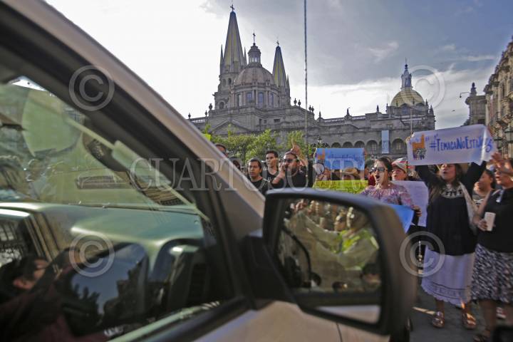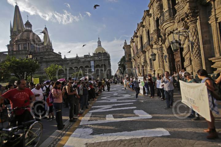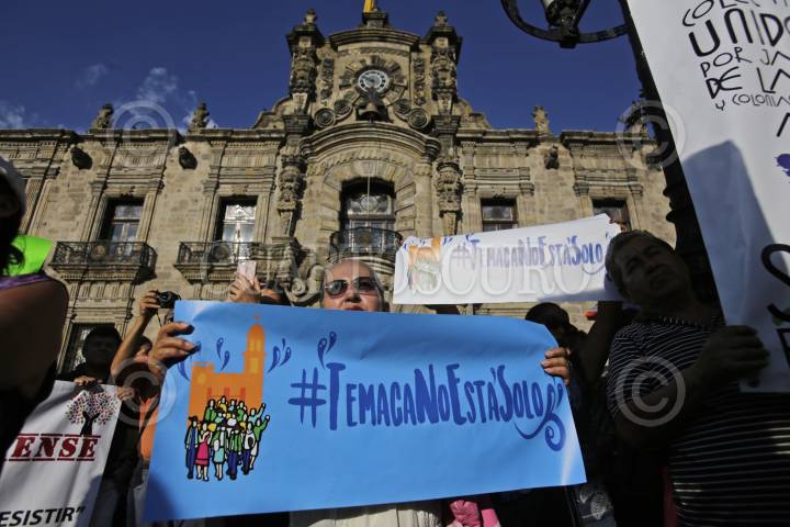 GUADALAJARA, JALISCO. 06JULIO2016.- Pobladores de Temacapulín, Acasico y Palmarejo, apoyados por ciudadanos del Área Metropolitana de Guadalajara, de los Altos de Jalisco y hasta algunas personas de León, Guanajuato, protestaron a las afueras de Palacio de Gobierno, en contra de la Presa El Zapotillo, ya que la cortina de 105 metros inundaría los tres poblados ya mencionados. FOTO: FERNANDO CARRANZA GARCIA / CUARTOSCURO.COM