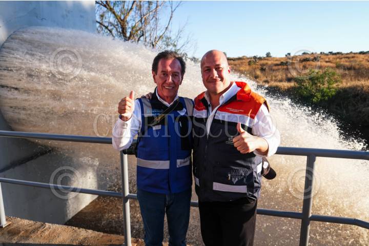 EL ZAPOTILLO, JALISCO, 21FEBRERO2024.- Previo a la inauguración este viernes con la presencia del Presidente Andrés Manuel López Obrador de las obras que dotarán de agua adicional al Área Metropolitana de Guadalajara (AMG) para los próximos 50 años, el Gobernador del Estado, Enrique Alfaro Ramírez, supervisó este miércoles el punto donde ya se conecta la red de la Presa El Zapotillo con la Presa Calderón (a través de el acueducto El Salto -La Red-Calderón), las cuales aportarán el primer metro cúbico por segundo adicional de agua proveniente del Río Verde a la ciudad a través de este sistema, mismo que una vez concluido en su totalidad, es decir teniendo en operación El Zapotillo, serán tres metros cúbicos de agua p/s que llegarán a la metrópoli. FOTO: GOBIERNO DE JALISCO/CUARTOSCURO.COM