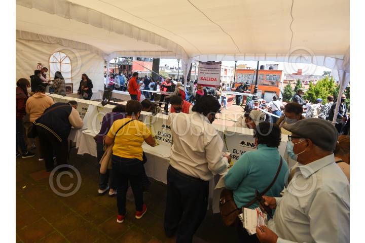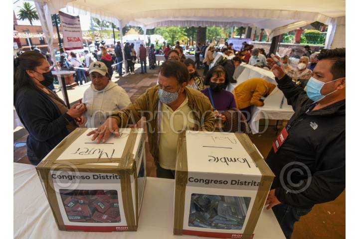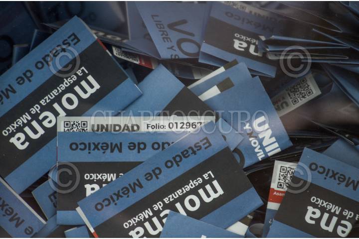 Conteo de votos en Toluca en la casilla ubicada en el Parque Cuauhtémoc Alameda Central después de llevarse a cabo este domingo la elección de delegados rumbo al Congreso Nacional de MORENA.