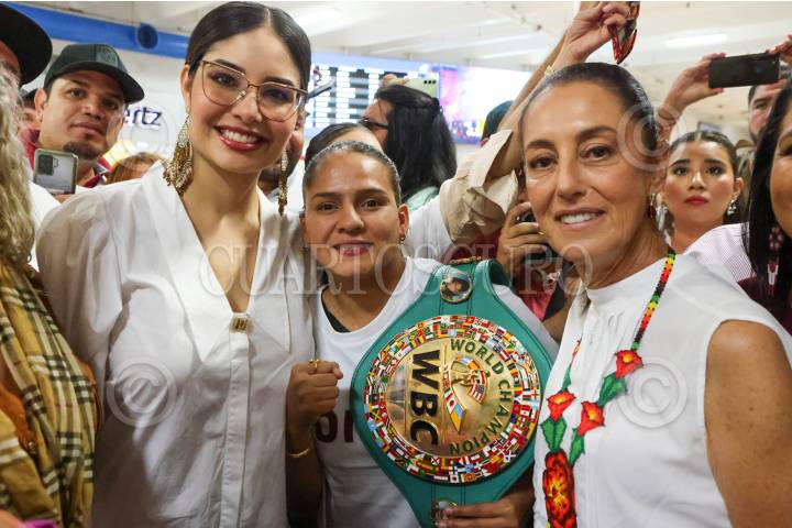 Claudia Sheinbaum fue recibidia por Geraldine Ponce, alcaldesa de Tepic, en el Aereopuerto de Puerto Vallarta, Jalisco.