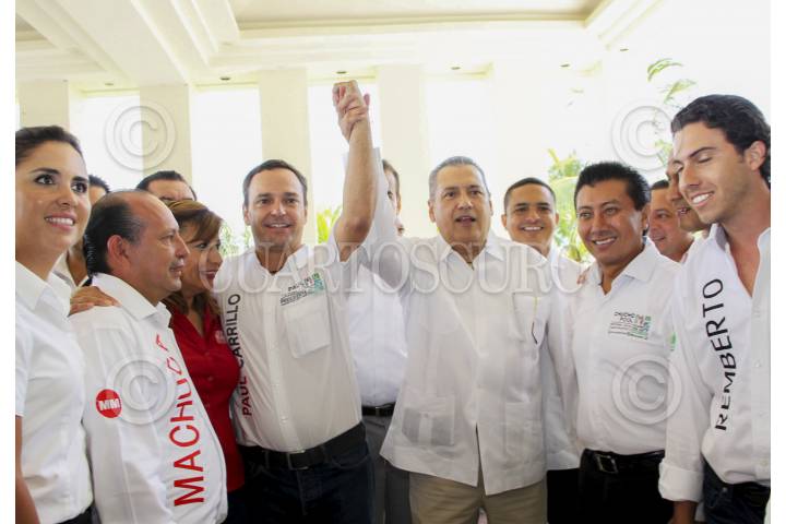 CANCÚN, QUINTANA ROO, 25JUNIO2013.-Manlio Fabio Beltrones, líder de la bancada priista en la Cámara de Diputados, estuvo en esta ciudad para apoyar al candidato del PRI a la presidencia de Benito Juárez, Paul Carrillo asi como a los candidatos a diputados; el líder de la bancada también se reunió con empresarios de esta ciudad. FOTO: ELIZABETH RUIZ /CUARTOSCURO.COM