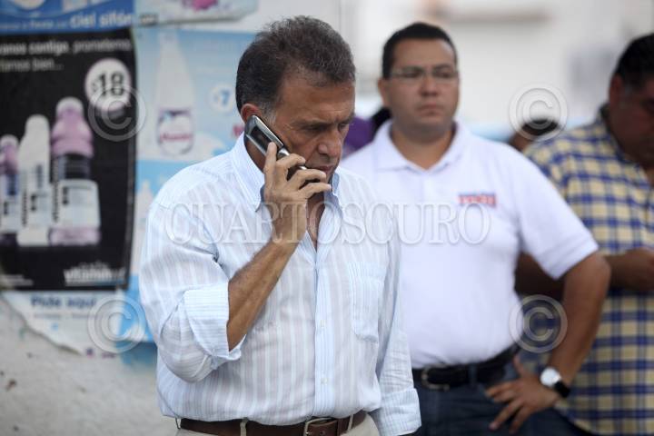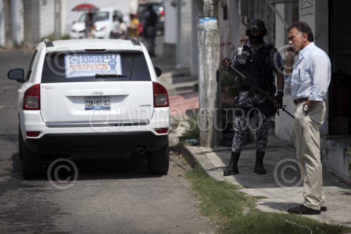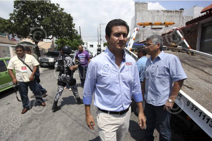 BOCA DEL RÍO, VERACRUZ., 02JULIO2013.- Uniformados de la Policía Naval tomaron conocimiento del presunto secuestro de Carlos Alberto Valenzuela, colaborador de la campaña de Miguel Ángel Yunes Márquez, candidato del PAN a la alcaldía de Boca del Río. Al lugar arribó el candidato acompañado del senador Fernando Yunes y el panista Miguel Ángel Yunes Linares. Poco después la Procuraduría General de Justicia de Veracruz aseguró que el militante blanquiazul se encontraba en libertad. Estos hechos se dan a cinco días de las elecciones en territorio veracruzano. FOTO: FÉLIX MÁRQUEZ / CUARTOSCURO.COM