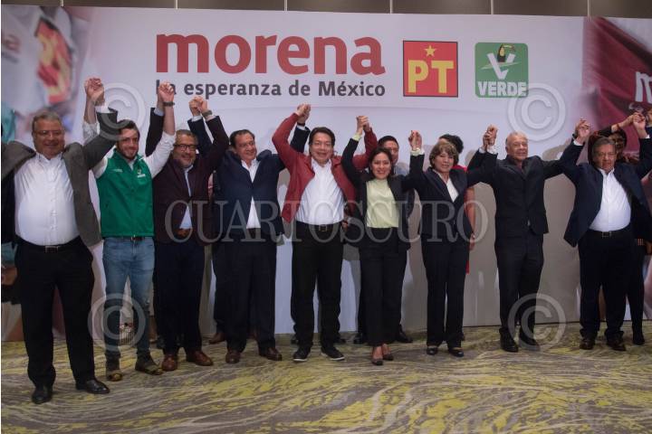 Los dirigentes nacionales: Mario Delgado (Morena); Karen Castrejón (PVEM), y Alberto Anaya (PT), confirmaron alianza para las elecciones para la gubernatura del Estado de México con la candidata Delfina Gómez, y de las elecciones presidenciales de 2024.