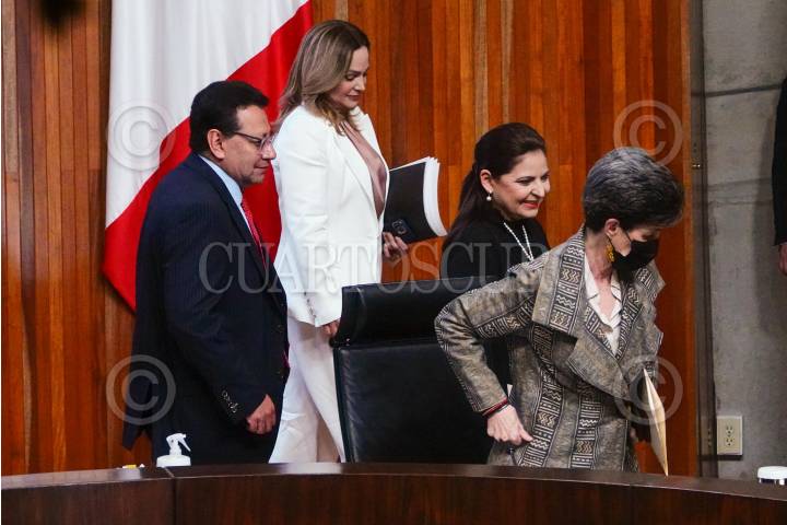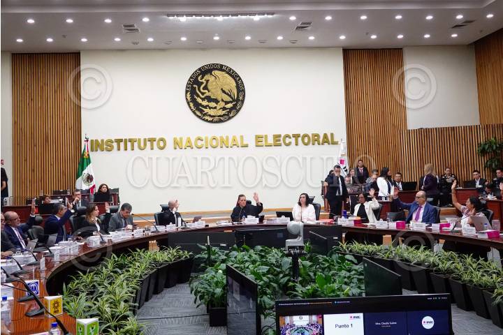 CIUDAD DE MÉXICO, 23AGOSTO2024.- Guadalupe Taddei Zavala, consejera presidenta del Instituto Nacional Electoral (INE), Dania Paola Ravel, Arturo Castillo y Norma de la Cruz, consejeros electorales, encabezaron la sesión extraordinaria del INE en la sede del instituto. FOTO: ROGELIO MORALES /CUARTOSCURO.COM