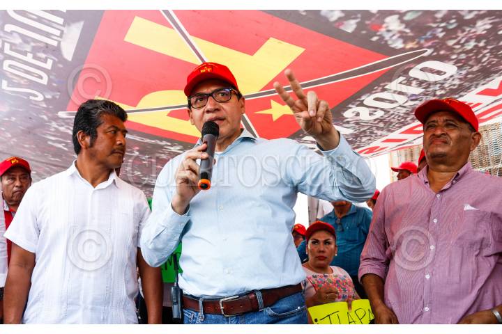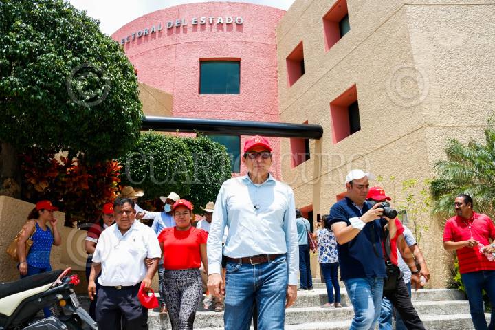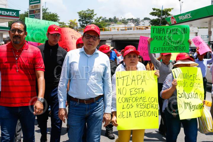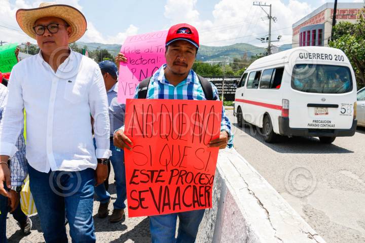CHILPANCINGO, GUERRERO. 08AGOSTO2024.- Militantes del Partido del Trabajo (PT) encabezados por su dirigente, el diputado federal Victoriano Wénces Real marcharon en Chilpancingo para exigir la revocación de la constancia de mayoría emitida a favor del priista Gilberto Solano Arreaga como alcalde electo de Tlapa, aseguran que utilizó recursos públicos para ganar los comicios del pasado 2 de junio. A más de dos meses de la elección, el diputado Wénces Real, quien es dirigente estatal del PT y fue candidato a la presidencia municipal de Tlapa, encabezó una marcha que salió de la sede estatal de dicho partido con dirección a las instalaciones del Tribunal Electoral del Estado de Guerrero (TEEG). FOTO: DASSAEV TÉLLEZ/CUARTOSCURO.COM