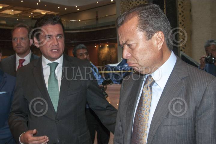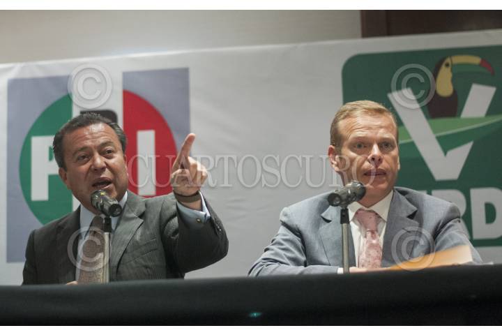 MÉXICO, D.F., 03AGOSTO2015.- César Camacho y Arturo Escobar, presidentes nacionales del PRI y del Partido Verde, ofrecieron una conferencia de prensa para hablar sobre la pasada elección llevada a cabo en el estado de Chiapas. FOTO: DIEGO SIMÓN SÁNCHEZ /CUARTOSCURO.COM