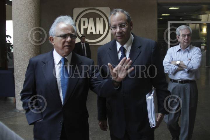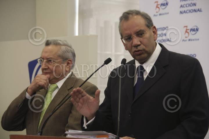 MÉXICO D.F., 16MAYO2014.- Francisco Gárate Chapa, presidente de la Comisión Organizadora Nacional de la Elección del PAN, ofreció una rueda de prensa con miras a la contienda interna la cual se realizará el próximo domingo, en donde la militancia panista elegirá entre Gustavo Madero y Ernesto Cordero, para llevar las riendas del blanquiazul. En la imagen lo acompaña Ignacio Altamirano. FOTO: MOISÉS PABLO /CUARTOSCURO.COM
