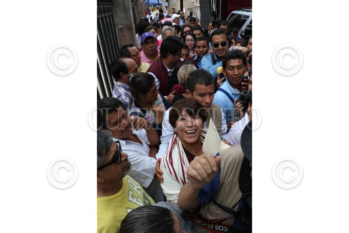 Diputados; Sergio Gutiérrez, Eulalio Ríos, Paola Tenorios y María de los Ángeles Huerta, a las afueras de la Fiscalía Especializada en Delitos Electorales. FOTO: ROGELIO MORALES /CUARTOSCURO.COM