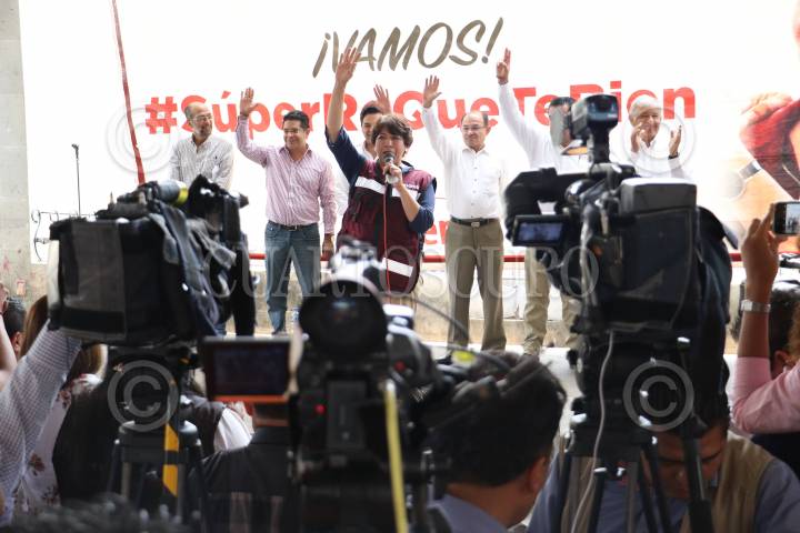 TENANCINGO, ESTADO DE MÉXICO, 16MAYO2017.- Andrés Manuel López Obrador acompañado de la candidata de Morena a la gubernatura del Estado de México, Delfina Gómez Álvarez visito el municipio de Tenancingo como parte de la campaña electoral previo a los comisios electorales. FOTO: SAÚL LÓPEZ /CUARTOSCURO.COM