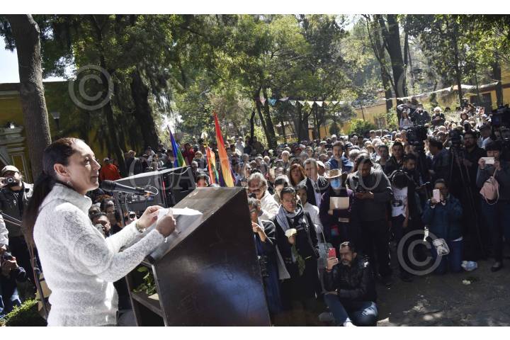 CIUDAD DE MÉXICO, 14ENERO2018.- Claudia Sheimbaum, precandidata por Morena para la jefatura de gobierno de la Ciudad de México, encabezó un acto pacífico en la Plaza Santa Catarina Coyoacán, para demandar que haya elecciones libres y de paz en el proceso electoral de este año. FOTO: MARIO JASSO /CUARTOSCURO.COM