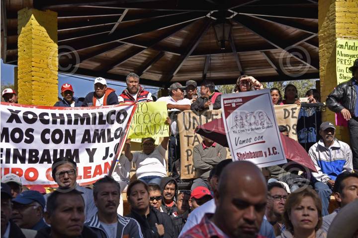 CIUDAD DE MÉXICO, 14ENERO2018.- Claudia Sheimbaum, precandidata por Morena para la jefatura de gobierno de la Ciudad de México, encabezó un acto proselitista en Xochimilco, como parte de sus actividades de precampaña. Durante el evento un presunto militante de Morena exigió la palabra para protestar en contra de las malas administraciones en Xochimilco. Sheimbaum, solicitó a los asistentes respeto a la libertad de expresión del sujeto. FOTO: MARIO JASSO /CUARTOSCURO.COM