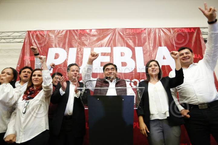 PUEBLA, PUEBLA, 01JULIO2018.- Miguel Barbosa Huerta, candidato a la gubernatura de Puebla por la Coalición Juntos Haremos Historia, en conferencia de prensa se declaró ganador. FOTO: CUARTOSCURO.COM