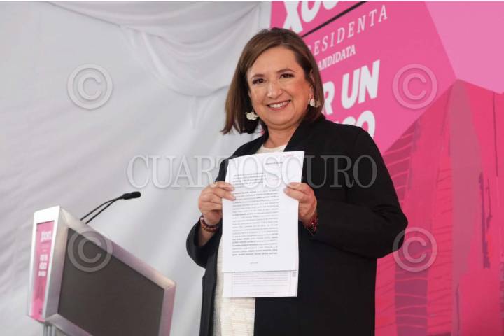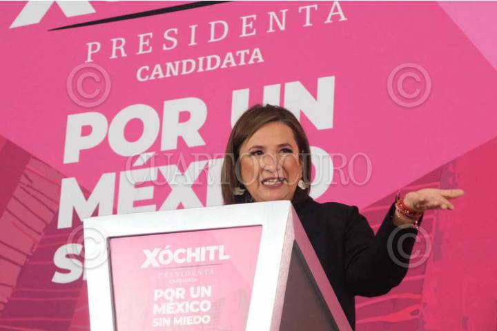 CIUDAD DE MÉXICO, 25MARZO2024.- Xóchitl Gálvez, candidata a la presidencia por la coalición Fuerza y Corazón por México, durante su conferencia realizada en su casa de campaña. FOTO: GRACIELA LÓPEZ /CUARTOSCURO.COM
