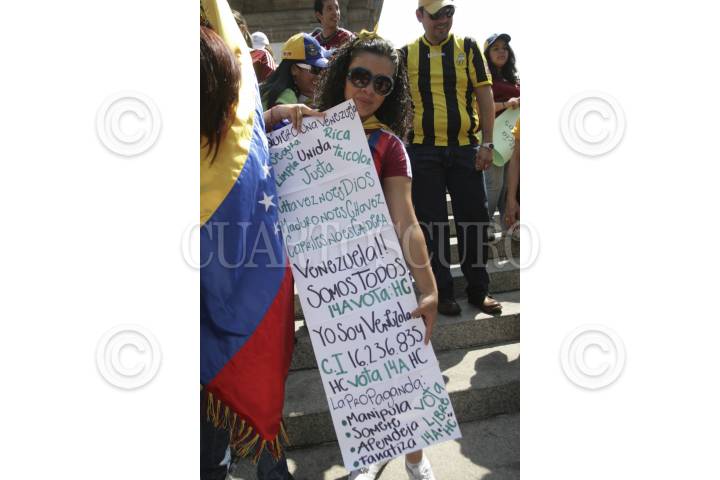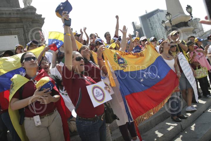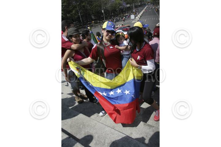 MÉXICO, D.F., 07ABRIL2013.-venezolanos radicados en México realizaron un mítin para apoyar a Henrique Capriles Radonski, candidato de la oposición venezolana que competirá el próximo 14 de abril por la presidencia Venezolana. FOTO: JUAN PABLO ZAMORA / CUARTOSCURO.COM