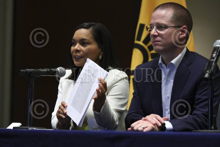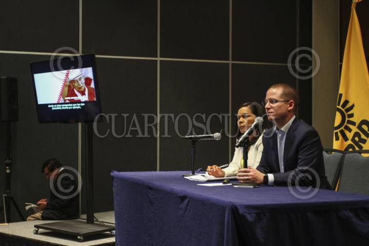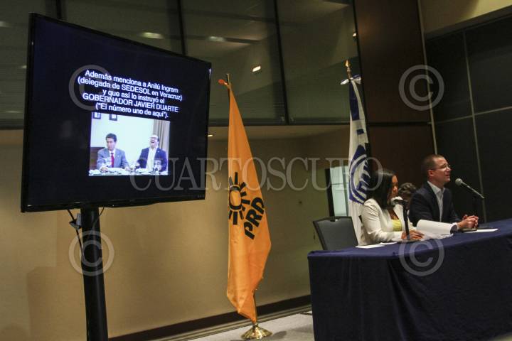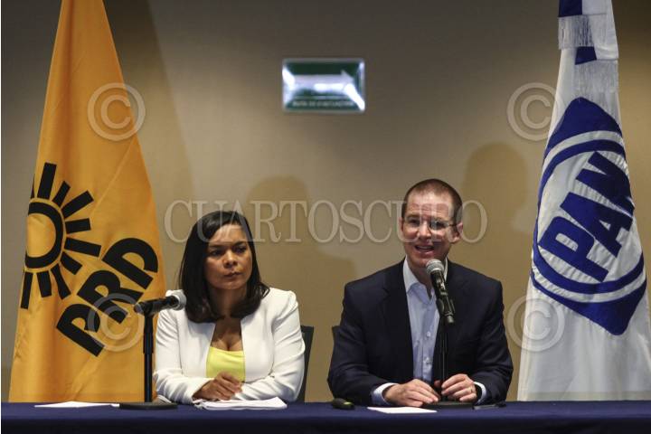 CIUDAD DE MÉXICO, 10MAYO2016.- Ricardo Anaya, presidente nacional del Partido Acción Nacional y Beatriz Mujica, secretaría general del Partido de la Revolución Democrática, durante la conferencia de prensa en donde presentaron la segunda parte de la conversación entre el el delegado de la sedesol en Veracruz, Alejandro Baquedano, operando a favor del candidato priísta en el estado porteño. FOTO: ADOLFO VLADIMIR /CUARTOSCURO.COM