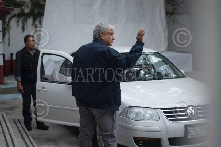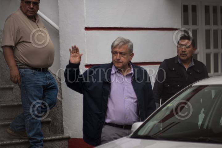 CIUDAD DE MÉXICO, 02SEPTIEMBRE2018.- Andrés Manuel López Obrador, presidente electo de México, a su salida de la casa de transición tras sostener distintas reuniones con parte de su gabinete. FOTO: MISAEL VALTIERRA / CUARTOSCURO.COM