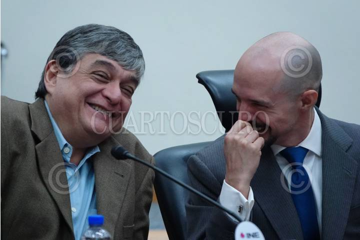 CIUDAD DE MÉXICO, 04MARZO2025.- Los consejeros electorales Uuc-Kib Espadas y Arturo Castillo Loza durante la Sesión Extraordinaria del Consejo General del Instituto Nacional Electoral (INE) en la que se discutieron El informe sobre la acreditación de personas interesadas en ser observadores electorales en Durango y Veracruz, así como las irregularidades en ingresos de gastos de campaña en las elecciones al cargo de Ayuntamiento de Venustiano Carranza, Chignahuapan, Xiutetelco y Ayotoxco de Guerrero. FOTO: GALO CAÑAS/CUARTOSCURO.COM