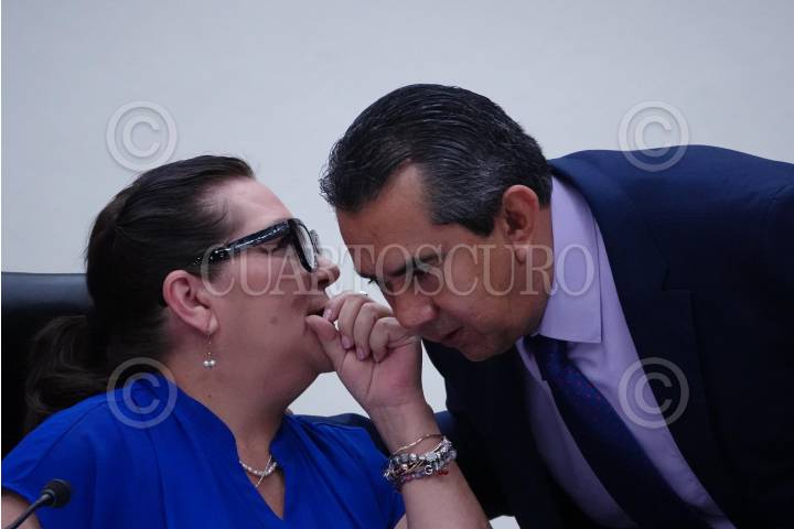 CIUDAD DE MÉXICO, 04MARZO2025.- La presidenta Guadalupe Taddei conversa con el consejero electoral Jorge Montaño Ventura durante la Sesión Extraordinaria del Consejo General del Instituto Nacional Electoral (INE) en la que se discutieron El informe sobre la acreditación de personas interesadas en ser observadores electorales en Durango y Veracruz, así como las irregularidades en ingresos de gastos de campaña en las elecciones al cargo de Ayuntamiento de Venustiano Carranza, Chignahuapan, Xiutetelco y Ayotoxco de Guerrero. FOTO: GALO CAÑAS/CUARTOSCURO.COM